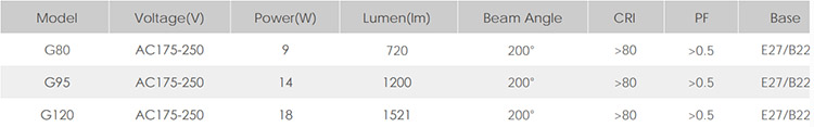 Specification of G Bulb LED Bulb Light: