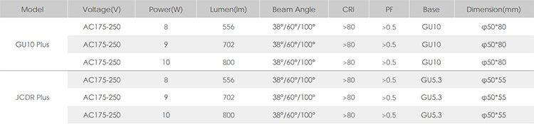 Specification of GU10 Plus Jcdr Plus LED Bulb Light: