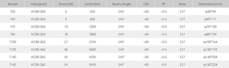Specification of T Bulb LED Bulb Light: